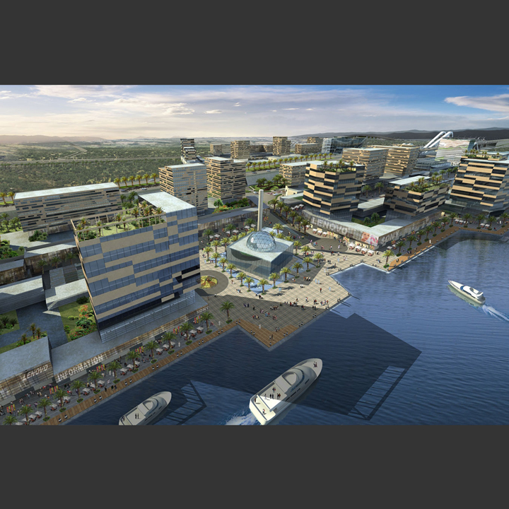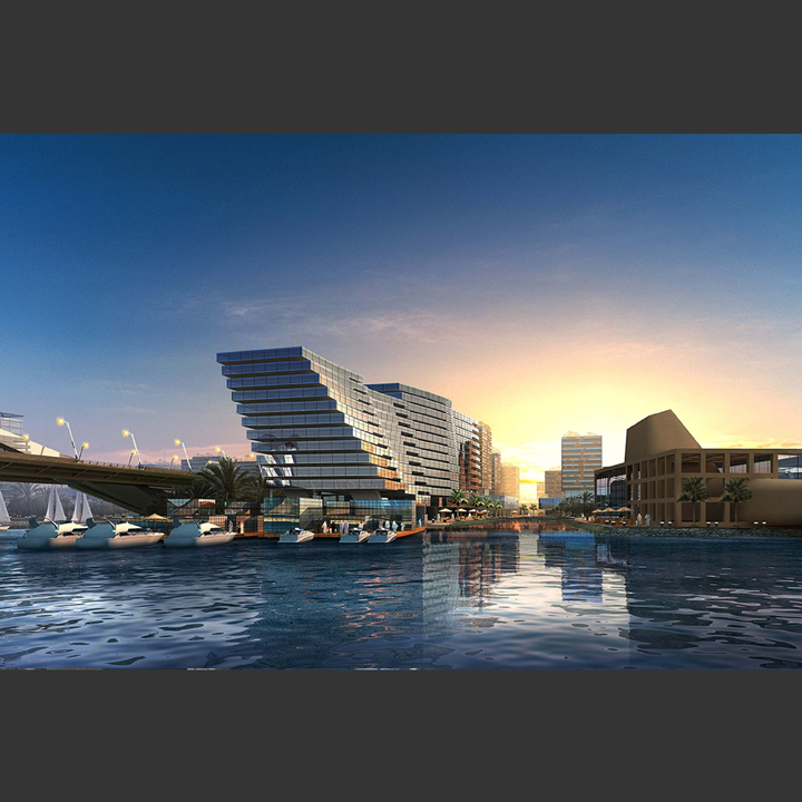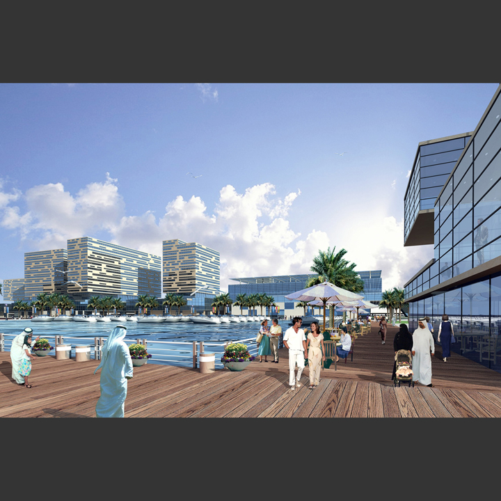 This waterfront development, located adjacent to the Maqta Bridge entrance into Abu Dhabi island, provides class A office space, a 5-star hotel, exclusive residential apartments, and prime retail uses along a promenade setting.